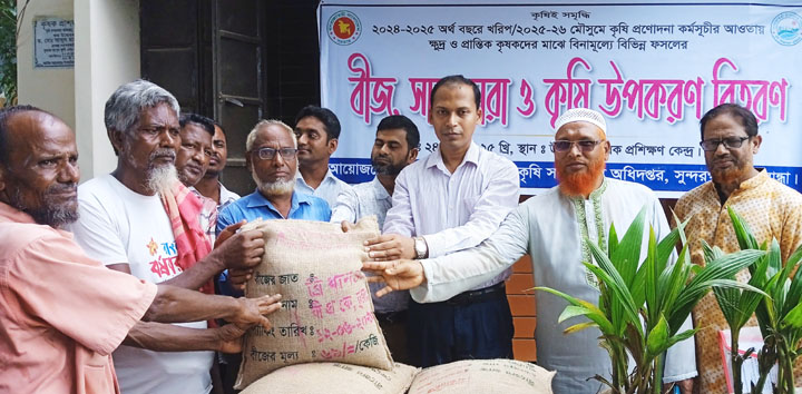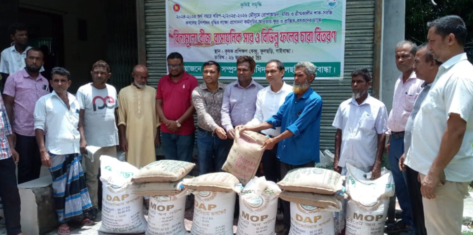 সুন্দরগঞ্জে কৃর্ষি প্রণোদনার আওতায় বিনামূল্যে বীজ-সার চারা ও কৃর্ষি উপকরন বিতরণ