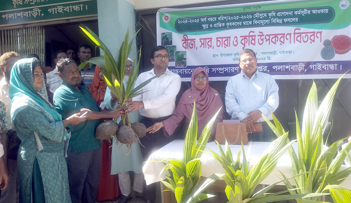 পলাশবাড়ীতে কৃষকদের মাঝে বিনামূল্যে নারিকেল গাছের চারা বিতরণ