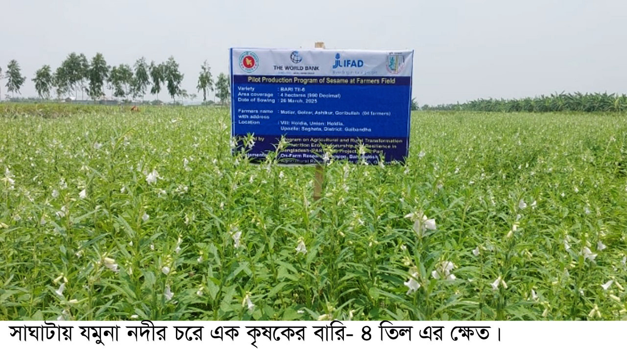 সাঘাটার চরাঞ্চলে বারি তিল ৪ ও ৬ চাষে কৃষকের আগ্রহ বাড়ছে