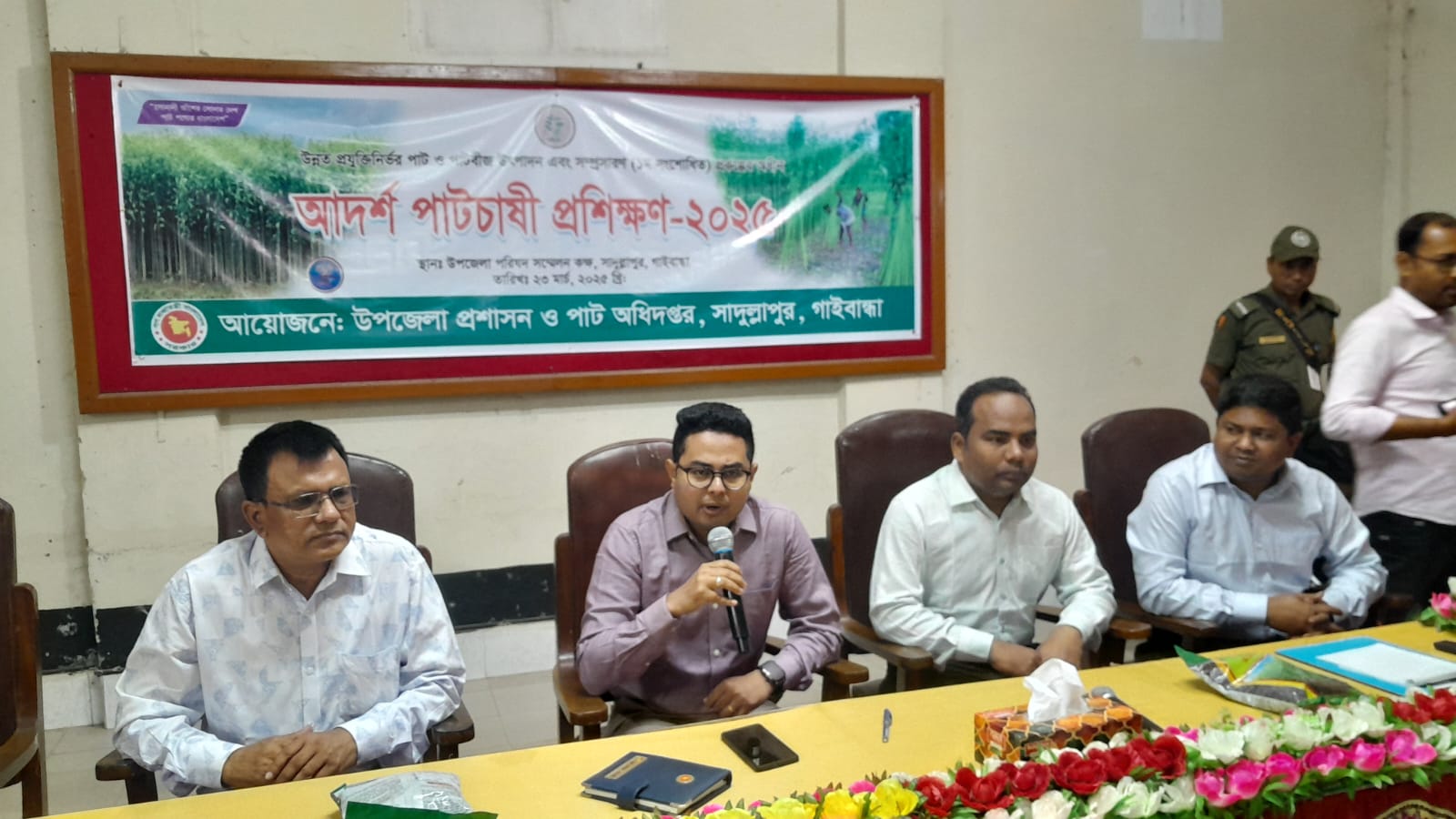 সাদুল্লাপুর সংবাদদাতাঃ গাইবান্ধার সাদুল্লাপুর উপজেলায় উন্নত প্রযুক্তিনির্ভর পাট ও পাটবীজ উৎপাদন এবং সম্প্রসারণ প্রকল্পের অধীন পাটচাষীদের সচেতনায় আদর্শ পাটচাষী প্রশিক্ষণ