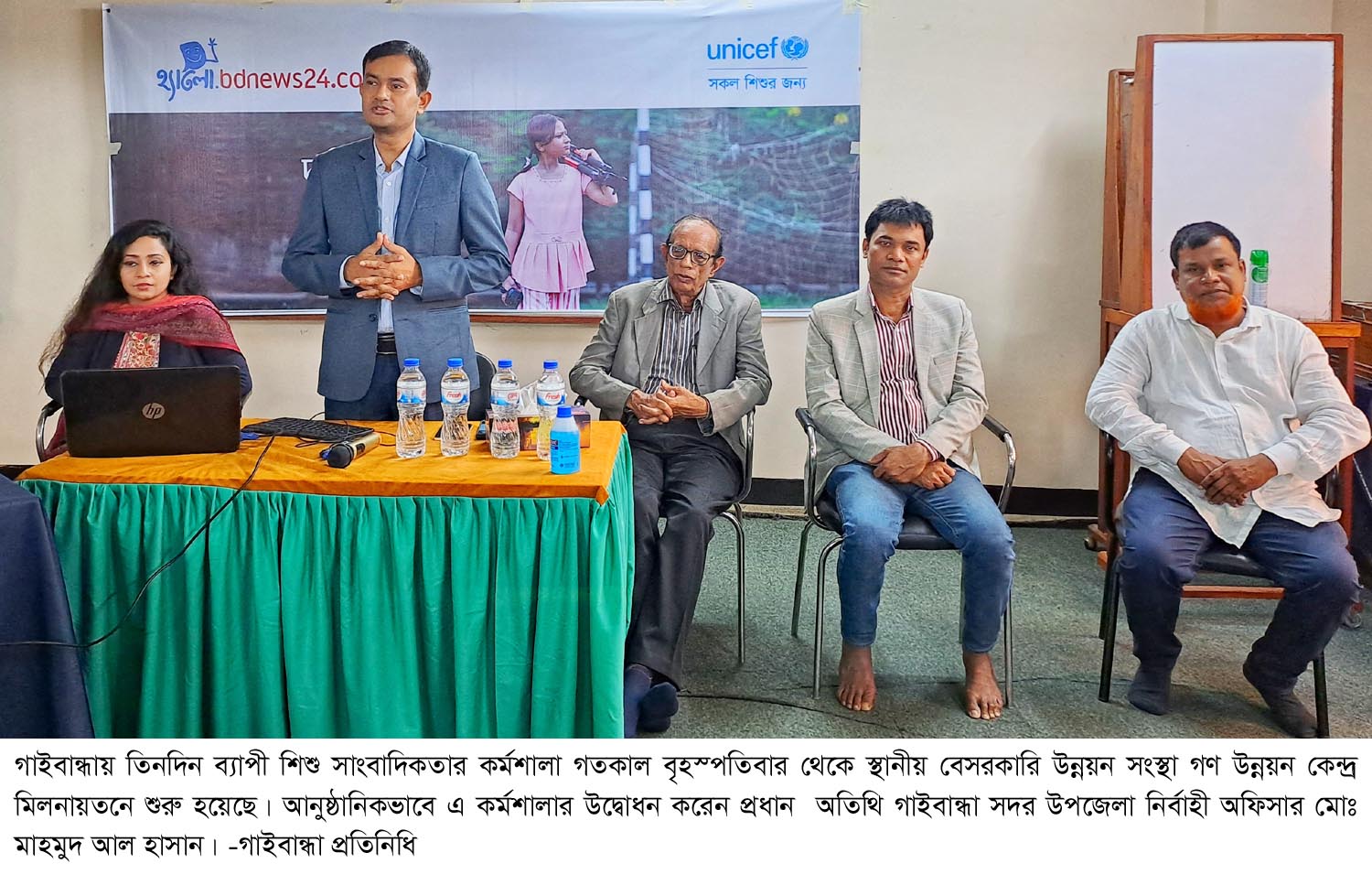 গাইবান্ধা প্রতিনিধি:গাইবান্ধায় তিনদিন ব্যাপী শিশু সাংবাদিকতার কর্মশালা গতকাল বৃহ¯পতিবার থেকে স্থানীয় বেসরকারি উন্নয়ন সংস্থা গণ উন্নয়ন কেন্দ্র মিলনায়তনে শুরু হয়েছে।